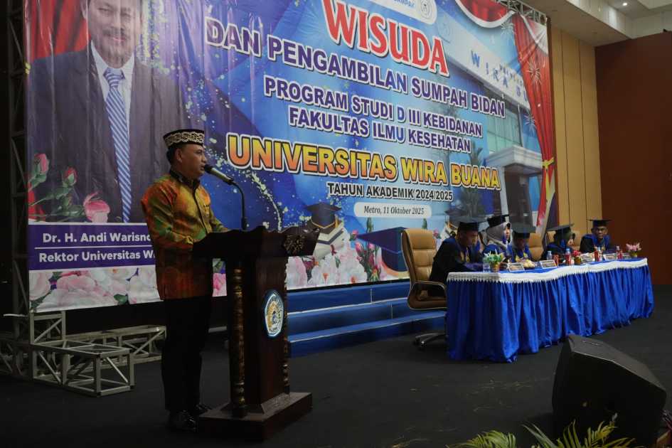 Hubungan baik antara Pemerintah Kota (Pemkot) Metro dan Universitas Wira Buana Metro kian erat, hal ini terlihat dalam kegiatan Wisuda 50 Mahasiswi Program Studi D-3 Kebidanan Fakultas Ilmu Kesehatan Universitas Wira Buana Metro, yang digelar di Gedung Sessat Agung Bumi Sai Wawai, Sabtu (11/10/2025).